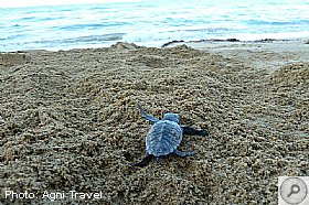 The beach at Santa Barbara in Katelios is a nesting area of the local caretta-caretta turtles, sometimes it attracts the loggerheads and it is occasionally patrolled by the Katelios Group for the Protection of marine and terrestrial life .